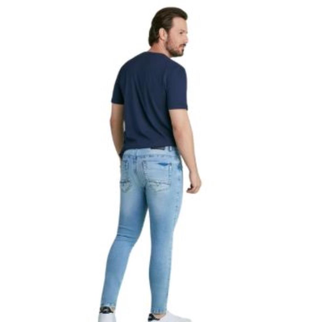 Skinny é o nome dado para a modelagem mais justa ao corpo que fica um pouco mais larga perto dos pés. Ela contém um pouco de elastano, o que garante o conforto da peça.